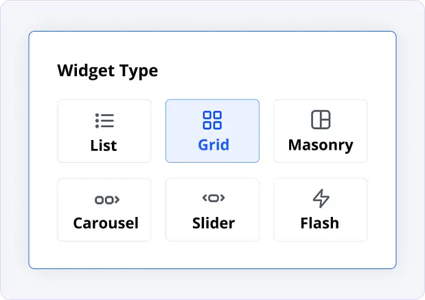 Choose the style that matches your restaurant website: List, Grid, Masonry, Carousel, Slider, or Flash—so your reviews look like part of your brand (not a cheap bolt-on).