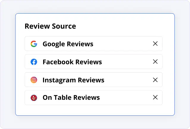 We connect your reviews from Google, Facebook, TripAdvisor, and OpenTable (where available) so your website pulls in real diner feedback automatically.