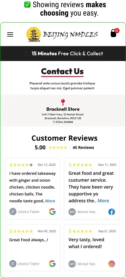 “Our website used to look like a brochure. Now visitors see real diner feedback without leaving the page. It just feels more trustworthy.” - Amrinder, Beijing Noodles